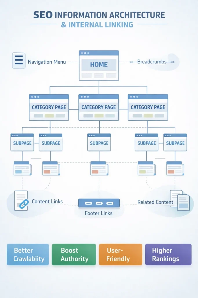 Information architecture and internal linking are the backbone of SEO. They help search engines understand your content and guide users smoothly through your site.
