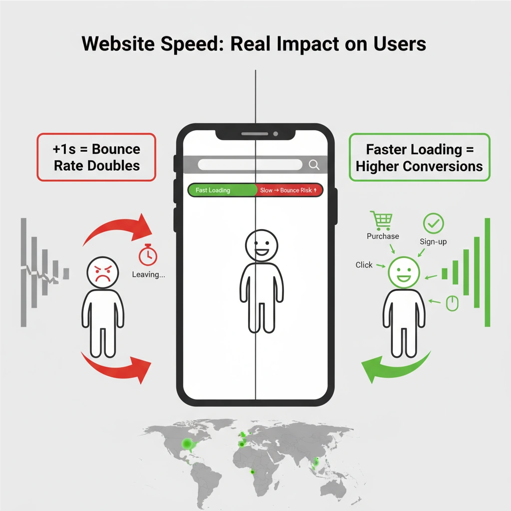 Inconsistent networks in these regions amplify drop-off rates. Slow loading erodes user trust quickly. Visitors leave sites that make them wait.