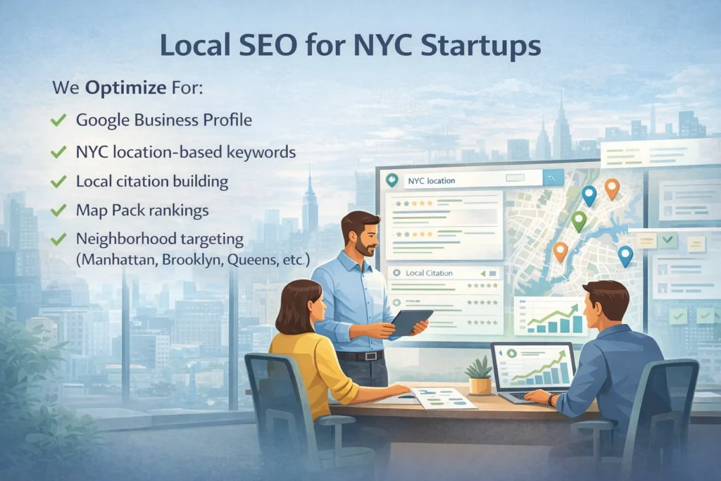 Yes. We optimize for Google Maps, local citations, and neighborhood targeting across Manhattan, Brooklyn, Queens, and surrounding areas.