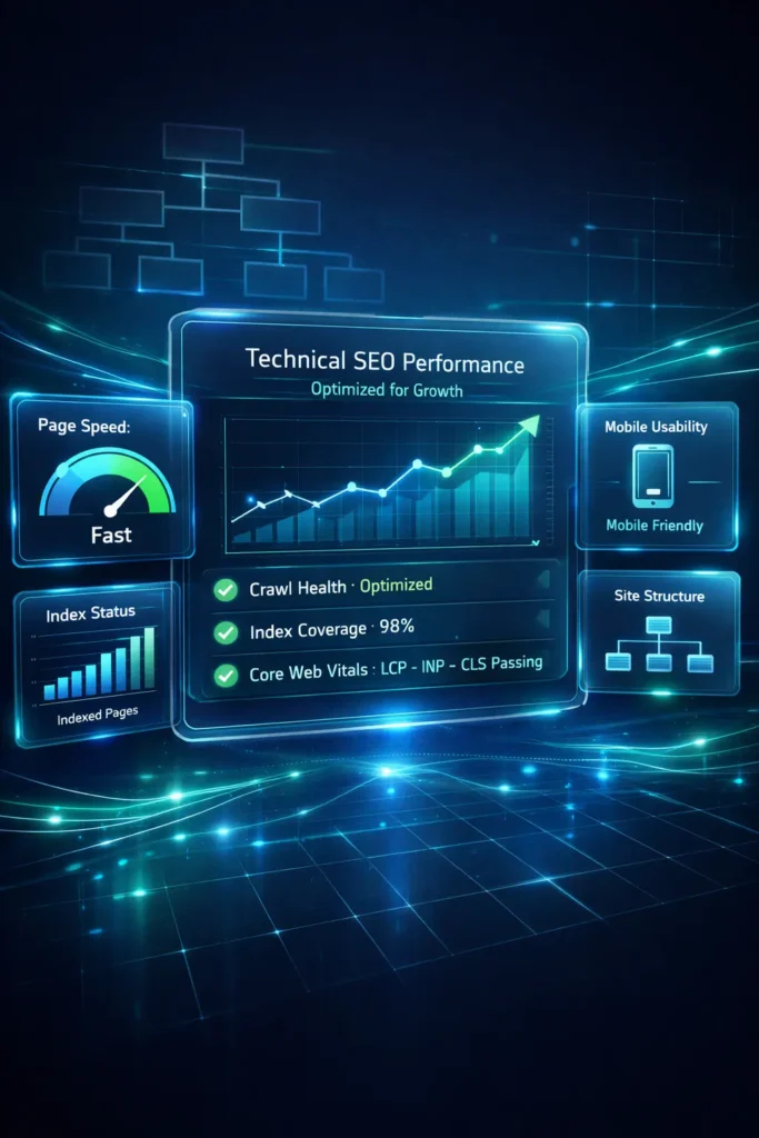 If your website isn’t ranking, converting, or loading fast enough, technical SEO is the problem — not your content. Our technical SEO service finds and fixes the hidden issues that stop Google from crawling, indexing, and trusting your site. We improve page speed, Core Web Vitals, mobile performance, site structure, indexing, and critical technical errors that silently block rankings and waste ad spend. No guesswork. No generic audits. Just clear fixes that improve visibility, user experience, and search performance. On this page, you’ll see exactly how we diagnose issues, what we fix, and how our process turns technical SEO into measurable ranking and traffic growth.
