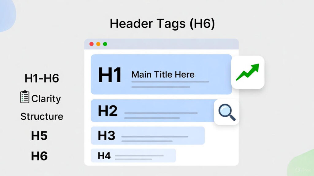 Header tags are titles inside your content. They go from H1 to H6. H1 is the main heading. It sets the page topic. H2 breaks it into sections. H3 adds sub-details. H4, H5, and H6 give even more layers. But most pages stop at H3.